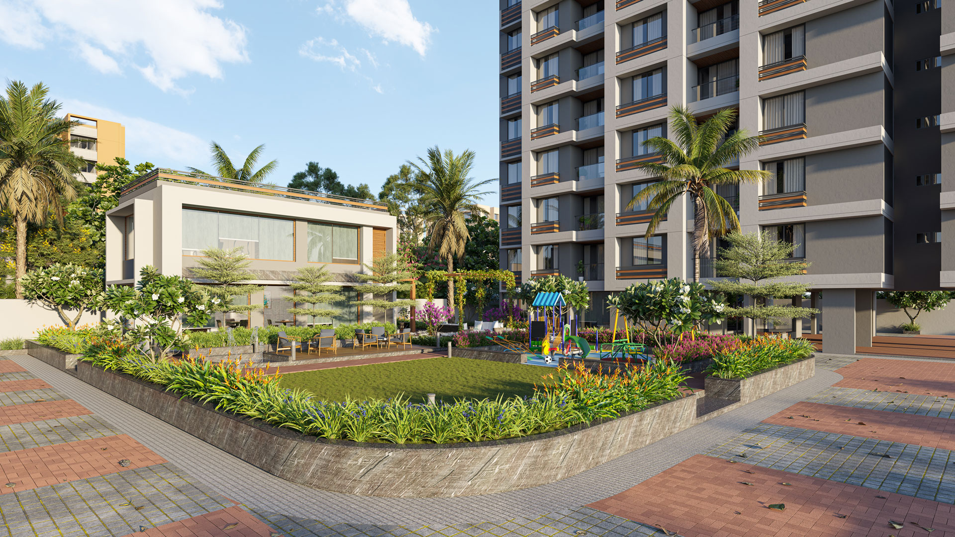 The commercial spaces at Aryaman Kalpvruksh are designed with functionality and business efficiency in mind. From retail outlets to corporate offices, each unit is crafted to provide maximum utility, high visibility, and a professional ambience.